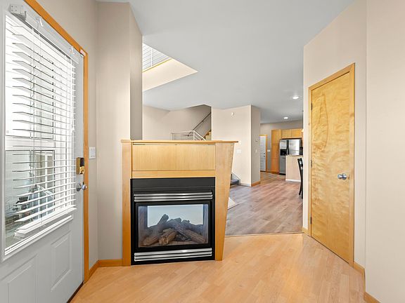 The main level features an open layout with granite countertops, modern finishes, and a cozy gas fireplace in the living area that opens to a front patio—perfect for relaxing or entertaining. The fully finished 2-stall attached garage offers extra storage and keeps you out of the weather year-round.