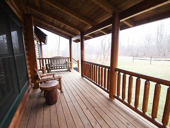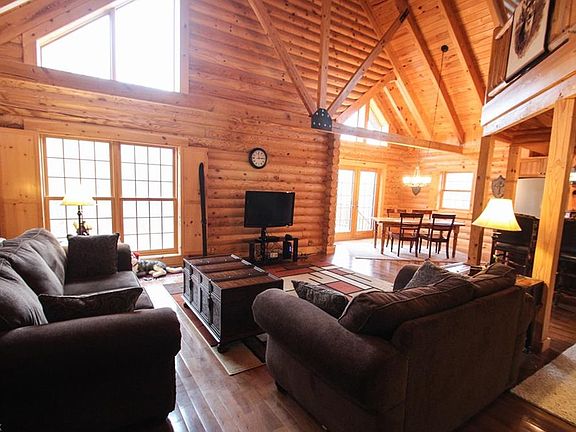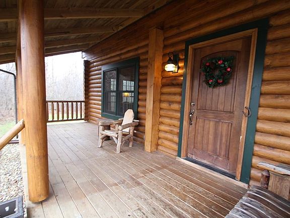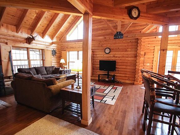 Beautiful and custom is this Barna Custom Built Log Home which is one of the most experienced and high quality log home manufacturers in the U.S. The open floor plan boasts vaulted open ceilings and loft area that showcases the quality of this timber home. The wood-burning stove and heated hardwood flooring thru-out the first floor, heats the home evenly. The custom built cabinets and island in kitchen add to the character of the home. The first floor master bedroom boasts an updated bathroom with tile shower with glass door. Upstairs you will find the second bedroom, another full bath and a loft area that could be converted to a third bedroom if needed. Enjoy the convenience of a first floor laundry and additional kitchen storage with a built-in pantry. The full basement offers storage or additional living space potential. Enjoy coffee on the covered front porch, back deck or breezeway.