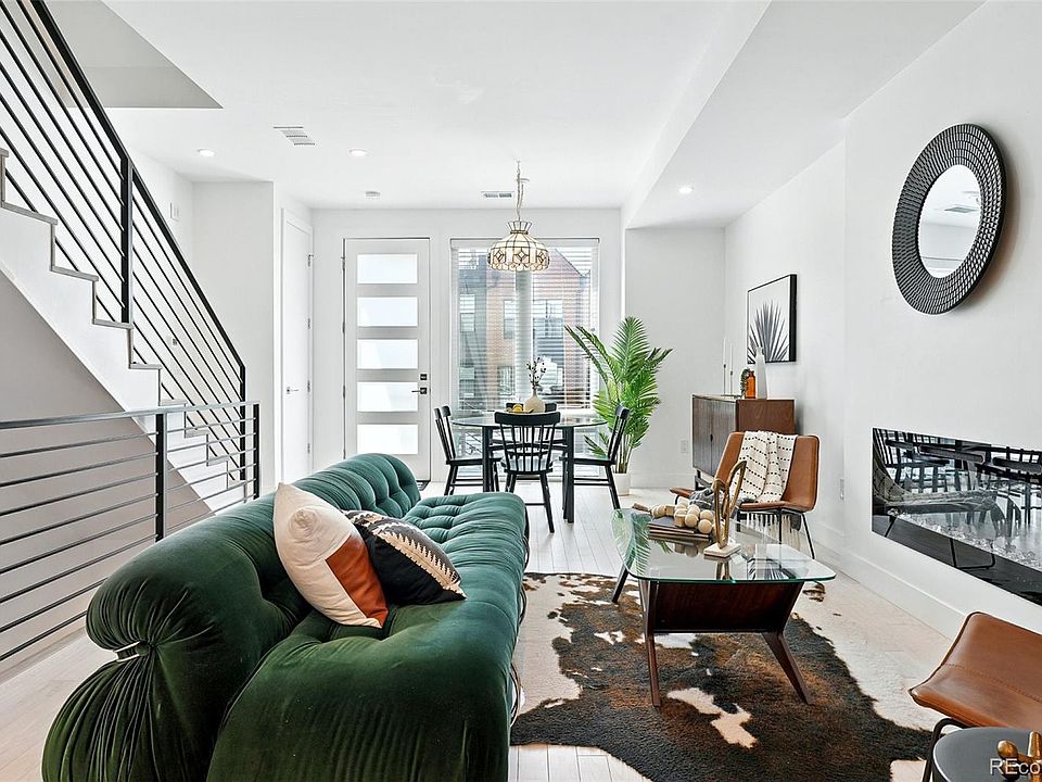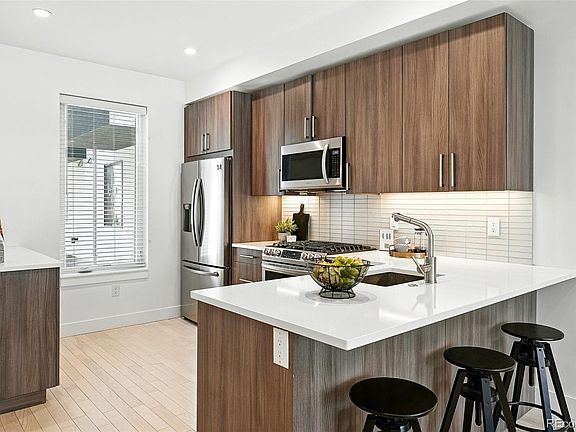 Experience elevated living in this modern townhome, perfectly situated in the heart of the vibrant Tennyson/Berkeley neighborhood. Built in 2019, this beautiful home offers a seamless blend of style, comfort, and functionality—topped off with a private rooftop deck that delivers jaw-dropping mountain views. Inside, you'll find an open and airy layout designed for both entertaining and everyday living. Expansive windows flood the space with natural light, highlighting hardwood floors and upscale finishes throughout. The chef’s kitchen features quartz countertops, stainless steel appliances, gas cooktop, pantry, and a dining area—ideal for casual meals or hosting friends. The second level offers two spacious bedrooms, including a serene primary suite complete with two closets and a spa-inspired ensuite bath. And when it's time to unwind or entertain, head up to your private rooftop retreat to enjoy panoramic views of the Rocky Mountains. Located just blocks from local favorites—top-rated restaurants, boutique shops, fitness studios, grocery stores, live music venues, and so much more. For a deeper look at the neighborhood, check out www.exploretennyson.com. Don’t miss your chance to enjoy low-maintenance, lock-and-leave living in one of Denver’s most sought-after communities!