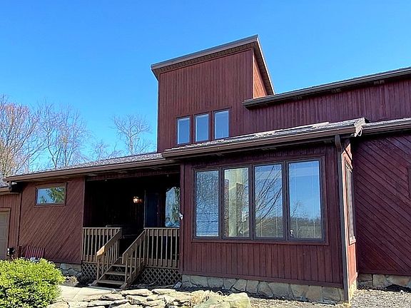 Spectacular Amish-build cedar home for sale with 95+ acres & negotiable mineral rights! This one-of-a-kind home features 4250 square feet of finished living space; including a large master suite and private sitting area on the second floor overlooking the beautiful first floor living room with vaulted wood ceilings, exposed beams, a newly updated kitchen, large dining room, and magnificent windows overlooking the countryside! The outdoor space boasts amazing views from the 2 decks and the inground pool and patio area. Additional buildings include 3 sheds and a 2500 sq ft. barn and pasture. It doesn't get any better than this!