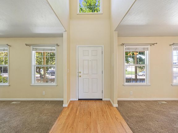 Discover comfort and convenience in this spacious home located in a highly desirable Southeast Boise neighborhood—just minutes from local parks, the freeway, airport, Micron, and more. Step inside to find a well-designed layout featuring both a cozy living room and a separate family room with a warm gas fireplace, plus a formal dining area perfect for gatherings. The kitchen is equipped with a breakfast bar, pantry, and easy-to-maintain tile flooring. Upstairs, the primary suite offers a true retreat with vaulted ceilings, a private walk-out deck, dual sinks, and a large walk-in closet. Enjoy newer upgrades including an AC and water heater for added peace of mind. Outdoor living is just as inviting with a welcoming front porch, a covered back patio ideal for entertaining, a spacious backyard shaded by mature trees, and a handy storage shed.