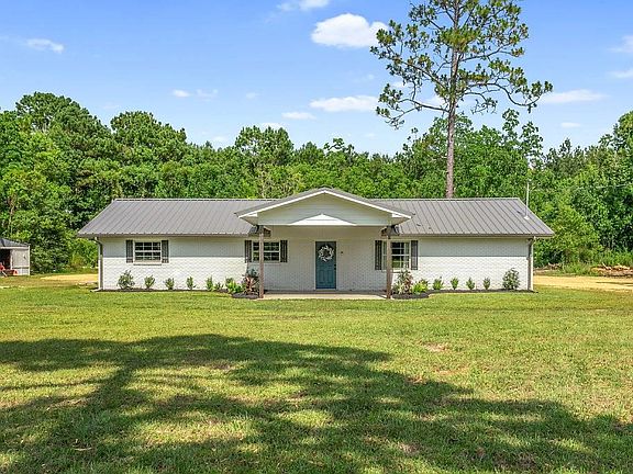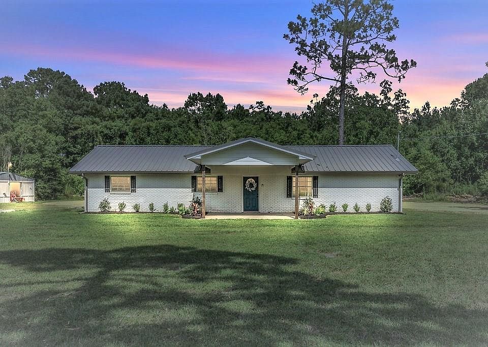 Secluded quiet country living at its best! Spacious 4 bedroom, 2 bath home situated on 11 acres. This beautiful home has just been gutted to studs and completely updated. Hard to find a home this nice already set up with barn and acreage to expand. Open floor plan with huge great room featured vaulted ceilings. Amazing kitchen featuring new custom cabinets, granite counter tops, tiled back splash, stainless appliances including refrigerator & coffee bar area. Master suite features walk in closet, double vanities & large jacuzzi tub. Formal dining area & large laundry room. Updates include new sheet rock, lighting/plumbing fixtures, counter tops, appliances, paint, luxury vinyl plank flooring, metal roof, electrical & plumbing updated, hot water heater & new bathrooms. 30 x 30 barn, 12 x 24 metal storage building & large front porch. House & half of the property is in flood zone X. Only very back of property is in flood zone AE. Seller reserves all curtains & rods.