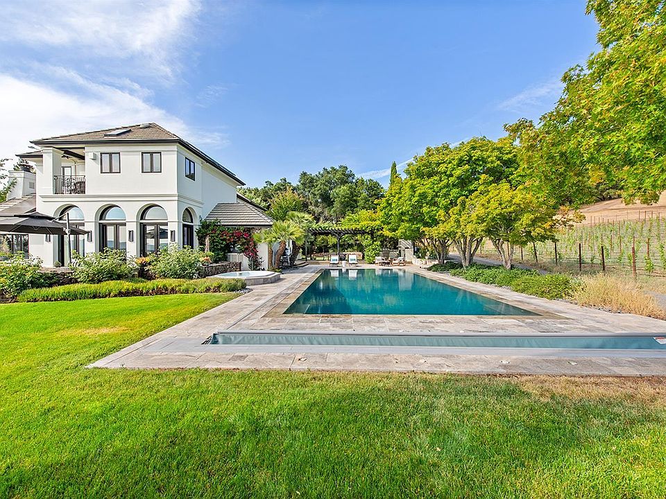 Welcome to 4395 Pine Flat Rd, an elegant Healdsburg estate offering some of the most breathtaking views in Sonoma County. Just minutes from downtown yet worlds away, this extraordinary property blends luxury, comfort, and resort-style amenities on 10+ mostly usable acres. The Main Residence consists of a four-bedroom, five-bathroom home is designed for both entertaining and everyday living. High ceilings, rich wood floors, and expansive windows frame vineyard and mountain vistas at every turn. Highlights include: Chef's kitchen with bar seating and seamless flow to the outdoor dining pavilion, formal dining room and multiple living spaces including a family room, library/office, gym, and wine cellar, main-level suite perfect for guests or multi-generational living, upstairs primary suite with private balcony, sitting area, and generous storage. A spacious detached studio offers flexible use for guests or extended family. Its outdoor entertainment area, complete with fireplace, is ideal for gatherings under the stars. This estate was made for relaxation and play, featuring a sparkling pool & hot tub, tennis court & bocce court, outdoor kitchen & vineyard-view dining, orchard, rose gardens, and raised garden beds, serene spots for birdwatching or simply doing nothing at all.