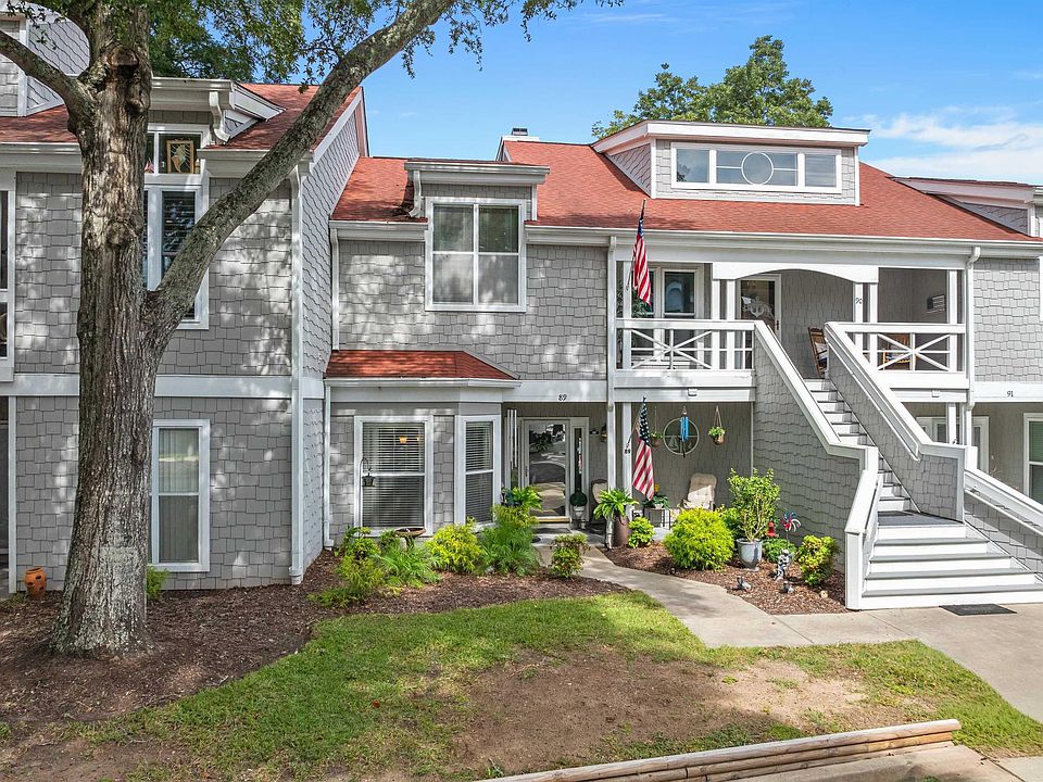 This townhouse style condo within Mariners Pointe, a gated Nantucket style community nestled among huge oak trees near Little River's historic Waterfront Fishing Village & bordering the Intracoastal waterway is full of charm & spaciousness. The upstairs loft has been converted into the 3rd bedroom. A fenced in patio allows for fresh air & fun time entertaining, while having easy access to the adjacent Carolina Room and Living Room with fireplace. Roomy primary bedroom with dressing area & bathroom with large corner tub and walk-in shower are on first floor. Galley style kitchen with convenient pass-thru to dining room & breakfast area with windows provide cheerful sunny start to your day! Boat slips are separate purchase. Tennis & pickleball courts for your pleasure now as well as a newly renovated swimming pool coming in Spring 2026. NOW is time to buy!