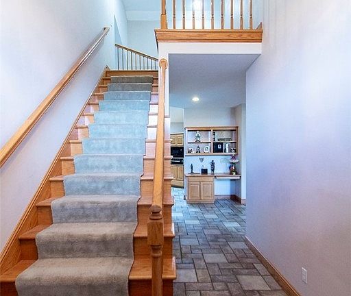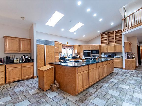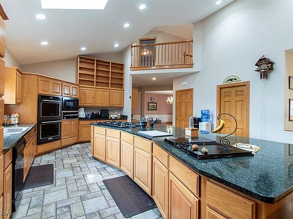 This gracious brick home offers great curb appeal and sits on 2 scenic acres on a cul-de-sac street. Designed with flexibility in mind, it’s perfect for multi-generational living with a first-floor owner’s suite, a private first-floor guest suite, and an additional ensuite upstairs. Bedrooms four and five share a convenient Jack & Jill bath. An inviting front porch leads you inside to an impressive two-story foyer with a heated slate floor that sets the tone for the home’s thoughtful design. The gourmet kitchen is a chef’s dream—featuring custom cabinetry, a massive granite island, walk-in pantry, and a custom wine room. The spacious great room offers a warm brick gas fireplace, built-in library shelving, and a convenient mini bar. For remote work, an open office provides the perfect workspace. Enjoy year-round entertaining in the relaxing 3-season room with a full bar and custom blinds, or host holiday gatherings in the oversized formal dining room. The luxurious first-floor owner’s suite includes a glamour bath and a large walk-in closet. Additional highlights include a walk-in attic for extra storage, a full basement with finishing potential, and an oversized 3-car garage with an attached workshop. Recent updates and features include a newer roof (2023), central vacuum, and a large circular drive.
