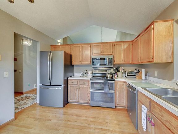 Welcome Home ~ Meticulously maintained home in the heart of Eagan and award winning school district 196! Sensible open-concept floor plan on main level is perfect for entertaining and includes kitchen with recently updated stainless steel appliances, beautiful Hardwood floors, and fresh paint. Walk through your sliding door and enjoy summer nights on your deck overlooking the private wooded 1/3 acre home site. Lower level features a spacious family room with fireplace, perfect for an easy-living lifestyle. Appeasing amenities include new carpets, fresh paint, Anderson windows throughout, new garage door, and new furnace. Brand new tile shower in upstairs bathroom! Fabulous location near shops, restaurants, entertainment, easy access to highways, and parks. This home is sure to impress, move-in ready!