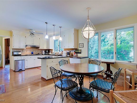 Welcome to this beautifully maintained 2,654 sq ft brick mid century modern ranch with attached 2-car garage and circular drive. From the moment you arrive, you'll notice the pride of ownership, the golf course quality lawn and elegant double front doors create a grand first impression. Inside the marble entryway opens to a spacious living room perfect for formal gatherings or quiet evenings. The formal dining room is accented with a mirrowed wall that adds a touch of sophistication for special celebrations. The large updated eat in kitchen is perfect for informal meals. The cozy family room is ideal for watching TV and family game nights. This home features 3 spacious bedrooms, including a master with an ensuite bathroom and walk-in closet, plus a study that could easily serve as a 4th bedroom. An additional full bathroom and a half bath round out the main floor. The expansive lower level runs the entire length and width of the house. There is ample room for kids to run around and enjoy themselves. With a second kitchen area, a bar, fireplace inlaid shuffleboard court, group gatherings can be easily accomodated. Completing the lower level is an office with built-in bookcases and an attached half bath. Additionally this one of a kind rare find is situated within walking distance to several houses of worship, John Carroll University, primary and secondary schools, restaurants, grocers,and buses connecting to the Greater CLE RTA Red Line.