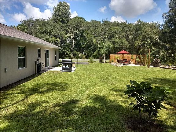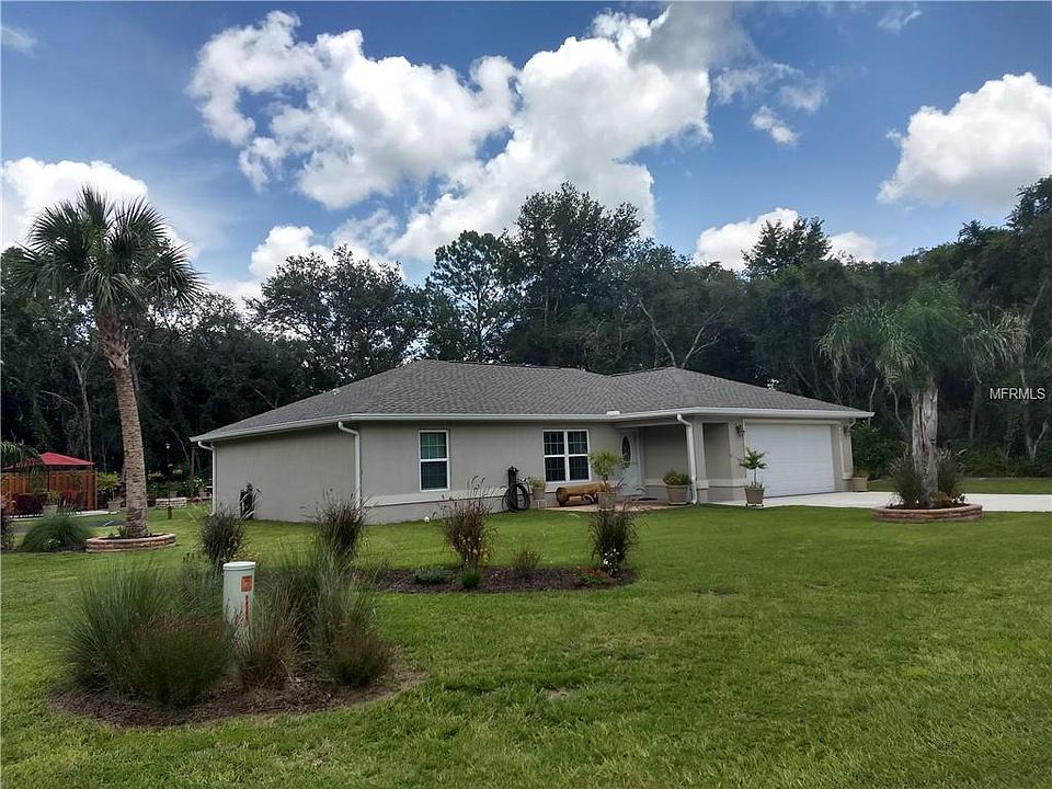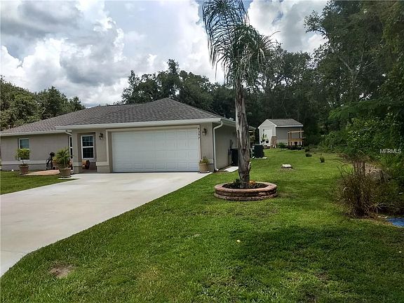 New Construction just 1 year old. Owner is very meticulous of this 3/2/2 palm treed corner lot location home with cherry stained hardwood cabinets, LED undercabinet lighting, LED lighting thru-out, upgraded bathroom faucets/vanity tops/brushed nickel hardware and 68" ceiling fan in living room. Oversized concrete driveway, RV parking pad at side yard, 10X10 front porch, 10X12 custom shed, 4 hose bibs, hip roof w/dimensional shingle, extra storage in garage, tub sink in garage, added electric outlets in garage, auto garage door opener and epoxied garage floors.