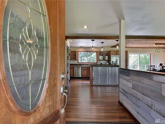 On just over 2 acres sits this adorable rustic style home! Gorgeous and clean, this freshly painted house offers custom built kitchen island, 2 bedrooms, 2 updated bathrooms, and office/extra bedroom. It has a new furnace, new flooring, new crawlspace insulation and vapor barrier. It's expansive deck allows for a seamless flow between inside and outside living.The yard offers both open and wooded touch with unlimited possibilities! Only 5 minutes to the ferry and close to schools & restaurants.