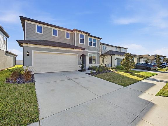 Move-In Ready 2024 Home in Highly Amenitized Marion Ranch! Skip the wait and enjoy all the benefits of newer construction in this beautifully designed two-story Tilden floor plan located in one of Ocala's most sought-after communities. Marion Ranch offers a resort-style pool with cabanas, clubhouse, fitness center, playground, sports courts, and more, all with convenient access to I-75, shopping, dining, and entertainment. This home features a bright open-concept layout with 18?x18? tile flooring throughout the main living areas, bathrooms, and laundry room, plus stain-resistant carpet in the bedrooms and loft. The kitchen is the heart of the home, showcasing a large island with single-bowl sink, white subway tile backsplash, quartz countertops, designer white cabinetry, and Whirlpool stainless steel appliances. A flex room provides the perfect space for a home office or study, while the upstairs loft offers additional living or media space. Additional highlights include LED downlighting, pendant prewire in the kitchen, an upgraded covered lanai, second-floor laundry, storage under the stairs, and a Smart Home technology package with video doorbell. Enjoy modern finishes, community amenities, and move-in-ready convenience, a smart alternative to waiting on new construction. Schedule your private showing today!