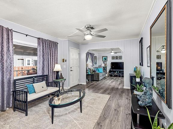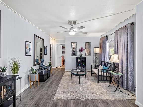 This home is a "RARE GEM" in a beautiful location. Buy this home and start building equity now for less then renting and apartment or home. All age park inside the gates of Oakwood Lake! Enjoy the Lake view from the back porch perfect for BBQs and entertaining. The low maintenance yard includes automatic sprinklers for the plants and fruit trees, leaving you plenty of time to enjoy the River or Lake.This home is move in ready starting with a newer composition roof, dual pane windows. Interior and exterior paint and the inside is stunning you will forget your inside a mobile home. Beautiful lighting new flooring, kitchen and baths have been updated. In addition is handicap accessible including a ramp. The energy in this home is special like no other mobile home.See it and feel it!!
