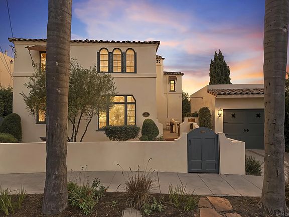 Nestled on a serene street in Mission Hills, this exquisite Spanish Revival gem seamlessly blends timeless historical charm with contemporary luxury. Built in 1924 the original owner was a prominent local politician and businessman. The home has been lovingly restored by its current owners, who invested over $500,000 to preserve its original splendor while incorporating modern upgrades. Thanks to its Mills Act designation, the property enjoys a significant reduction in property taxes. The home pulls you right in with its bright open windows and canyon views. The home capitalized on its views with a lovely balcony off the living room and walk out patio below. The spacious, integrated kitchen and dining area boast top-tier appliances, ample counter space, and elegant finishes, creating an ideal hub for gatherings. Meticulously maintained throughout, the home features key updates including replaced cast-iron drain pipes, a fully upgraded electrical system, extensive tiled roof repairs, fresh exterior paint, restored and replaced casement windows, an enhanced retaining wall and wrought-iron fence. Adding unique charm and convenience, a vintage elevator gracefully connects all three levels. The bottom level has a pair of French doors that open to the patio and backyard. (Perfect for a guest suite). There’s a laundry room, an ADA compatible bathroom that is also accessible from outside, a bar with a kegerator, wine fridge and beverage fridge, and a large open entertainment space. This outdoor area is equipped with professional grade outdoor space heaters.