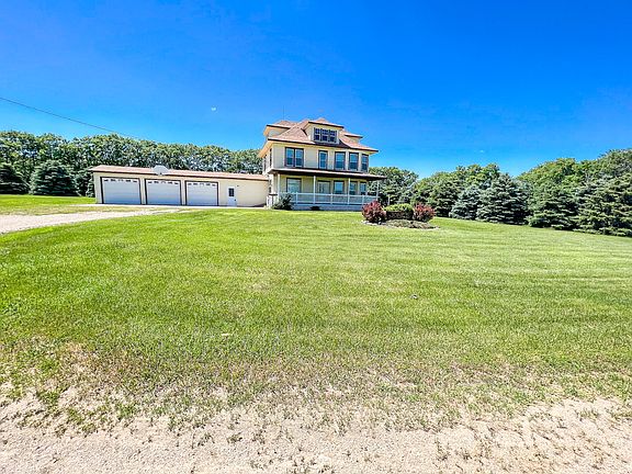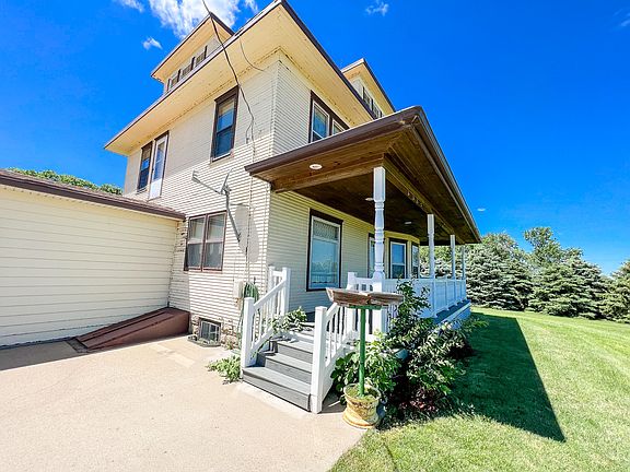 Don't miss this SOLD AS IS acreage on an oil road! This 2-story home includes 5 bedrooms, 2 baths, and 8.4 acres. Imagine spending your summers relaxing on the welcoming covered front porch! The front door leads to the living room with large windows and a fireplace. The main level also has a formal dining room, an eat-in updated kitchen, 2 bedrooms, a ¾ bath, and a mud room with main level laundry. Head to the upper level to find 4 additional bedrooms and a full bath. The HUGE 3 stall garage is attached, and you'll also find a shed and shop on the property for additional storage or hobbies. Don't miss your chance to make this your home sweet home!