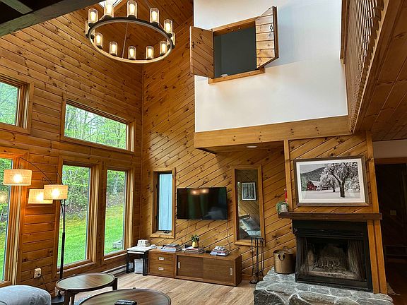 Nestled amongst the trees, this completely updated 3 bedroom plus loft Suntec townhome with large windows overlooking the forest has some of the nicest upgrades available in a SunTec townhome! This spacious three level townhome with an open concept design lends to entertainment and down time with family and friends! The main level with mountain modern renovations features a gourmet kitchen with all new appliances, custom cabinetry, and gorgeous quartzite counters. With all new flooring and lighting is featured throughout the main level. In the living room hangs an exquisite chandelier and a beautiful stone hearth adorns the wood burning fireplace. The main level bonus room has additional sleeping accommodations as well as an ensuite bathroom. On the second floor is a large master bedroom with vaulted ceilings and an ensuite bathroom, and just down the hall are two additional generous sized bedrooms. The third level features a loft space, great for an office or game room. With updated furniture and tasteful renovations throughout, there is nothing left to do but come enjoy the Green Mountains of Vermont! Storage is plentiful inside the unit, as well as directly outside the mudroom entry. Association amenities include an outdoor pool and tennis courts for more recreational fun. This is the ideal location for all seasons, just minutes from Mount Snow Resort, direct VAST access, nature trails, and a short drive to Wilmington and nearby lakes!