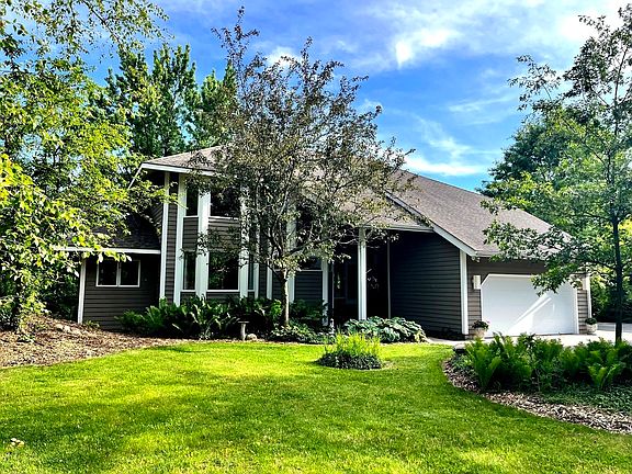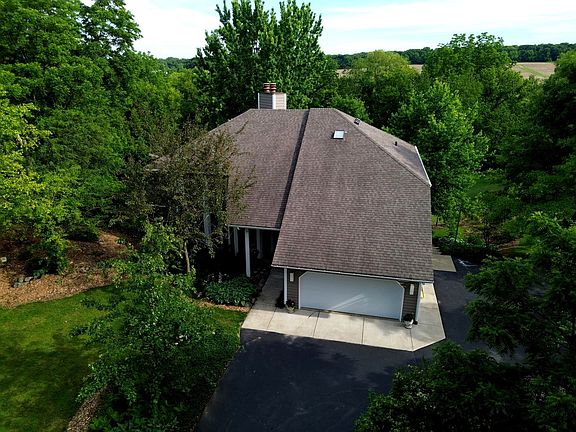 You'll love this quality custom one owner home! Tastefully updated & meticulously maintained on 1.55 tranquil wooded acres backing to a Forest Preserve. Vaulted great room with attractive flagstone fireplace specially created by an English artisan, gleaming hickory hardwood floors and a wall of windows to enjoy the amazing panoramic views. Beautiful updated gourmet kitchen has tiered cabinets with crown molding, stainless steel appliances, Electrolux 6 burner oven range, spacious island/breakfast bar & built-in window seat. Dining room, den & laundry room complete the 1st floor. The master suite has a walk-in closet & new luxury bathroom with an expansive view of the picturesque property. 2 additional bedrooms with large closets & a full bath are also on the 2nd floor. The walk-out finished basement includes: 2nd brick fireplace, rec room, wet bar with fridge, 9' ceilings, bedroom #4 & bathroom. The garage has great built-in shelving for abundant storage as does the heated multi purpose 608 sq ft mancave/shed. Other special features of this home: extra wide staircases, custom created window treatments throughout, central vac & fantastic wrap around freshly painted deck. NEW/NEWER: furnace & AC '18, roof w/warranty '16, water heater '14, garage door '24, driveway sealed '23, washer & dryer '23, microwave w/warranty '22, well bladder '22, stairs & 2nd floor carpeting '18, custom cherry bar & entertainment center. Nothing left to do but move in and enjoy this wonderful home and the inviting nature surrounding you. ***HIGHEST & BEST BY SUNDAY 6/9 8 pm***