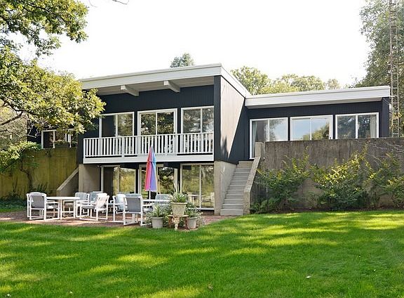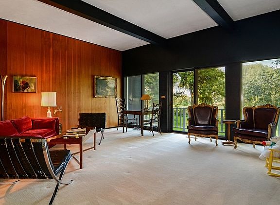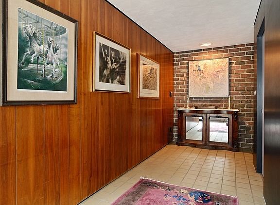 Unusual mid-century modern home by architect Stanley Tigerman offers an open floor plan and use of natural materials such as tumbled brick and wood paneling. The walkout lower level offers an additional 1,150 square feet of living space. The rear of the home has wonderful floor-to-ceiling windows that look out over 3/4 acre and open space. Home is just minutes from I-88 and Metra station with service to Chicago.
