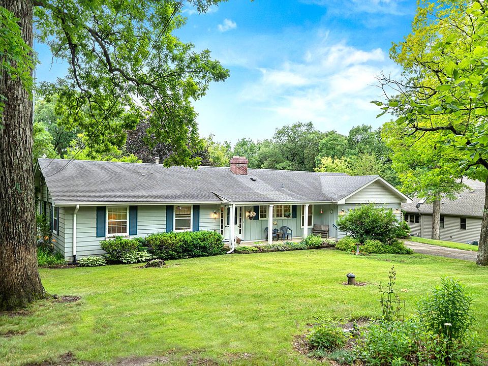 SERENITY WITH A VIEW! If you have been dreaming of quiet living, this 4 bedroom, 3 bath RANCH home offers that and more. The open layout features an oversized living room with brick fireplace surrounded by natural light from a wall of patio doors that open to an extended deck overlooking the tree lined .72 acre yard offering privacy with a front row seat for bird watching. The eat-in kitchen includes plenty of cabinets & counter space, a tiled floor, access to the 2+ car garage plus a wonderful view to the front yard. A large dining room provides ample space to entertain while enjoying the outdoor scenery. The spacious family room makes a perfect place for relaxing, reading or watching TV. A second door to the garage adds convenience for the bringing items in & out of the lower level. The master bedroom includes a private bath with two secondary bedrooms sharing an additional full bath. The FULL finished walk-out lower level boasts an expanded rec area, a large 2nd kitchen ideal for hosting or for in-law living arrangements, 4th bedroom, full bath, laundry area, office/craft/flex room with storage plus a workshop. Sliding doors to the covered patio open to the vast scenic yard. NEW well tank in 2019, iron filter system approx. 2016, roof & deck 2011 plus NEW water heater in 2021. Great location with access to new I88 tollway exchange, plus convenient to multiple communities' amenities. Come experience living the peaceful life out in the country.
