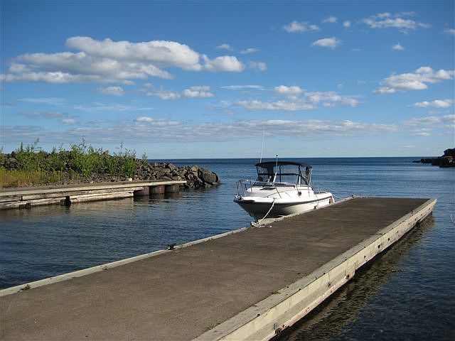 A rare opportunity to own a private harbor with permanent docks on Lake Superior! 225 feet of level shoreline with a sand beach offering spectacular views! There's also a beautiful wooded area perfect for that dream home or cabin. Truly a unique property.