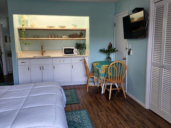 This newly renovated studio offers a relaxing and tropical sense of home with contemporary design and garden view. Tucked away in an upscale quiet neighborhood, this studio is located right off the H3 highway.