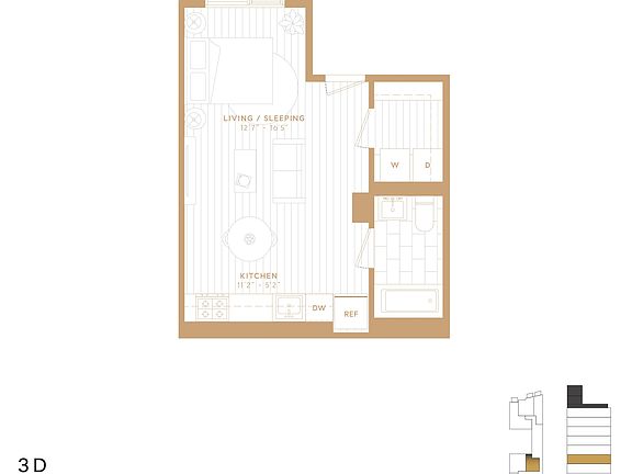 3D is a generously proportioned studio apartment and features a large walk-in closet.