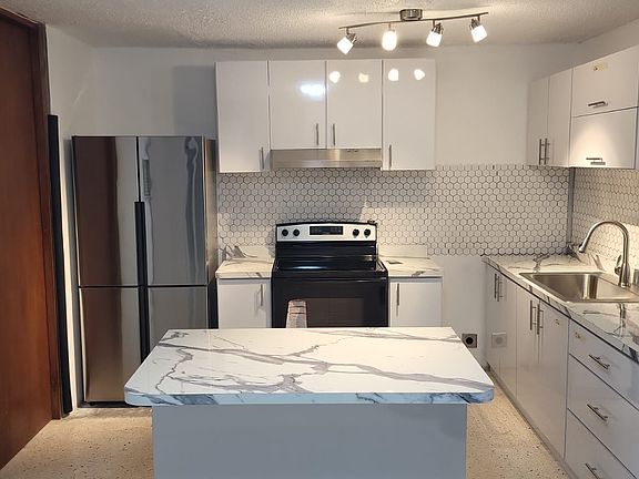 This freshly renovated and move in ready first floor house, consist in 4 bedrooms/ 2 bathrooms, an open concept house with a fully equipped kitchen with stove refrigerator, microwave , pantry and an island that can be used as a breakfast area. In a Dining room up to 6 chairs table can fitted and has a very large comfortable living room. Two( 2) out of four ( 4) bedrooms include A/C, master and a medium bedrooms. Garage for up to 3 vehicles and water heater. Very quiet and safe neighborhood. Close to schools, malls , hospitals, Carolina downtown, supermarkets, Government offices, fast food, cafeterias. 10 minutes from the airport, 15 minutes from the Mall of San Juan. 10 minutes from Parque Escorial and Los Colobos Shopping Malls. Power and water is not included. Section 8 is not accepted. One year contract Credit report will be run and back ground. Conduct certification must submit at the time of the contract. 2 months deposit and first month rent. Dimensions 1. Master and medium bedrooms - 12ft L x 10.5 ft W 2. Additional bedrooms- 10ft L x 8 ft W 3. Living room 16ft L x 13 ft W 4. Dining room- 12ft L x 6ft W Tenant will pay the power, water, lawn front grass. One year contract