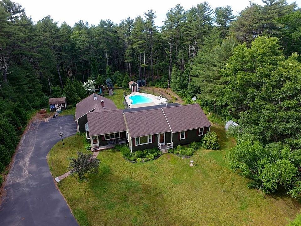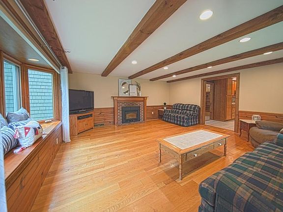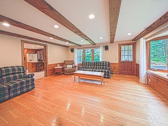 3bd/2bth 1970 sq ft Oversized Ranch on a side street. Outdoor living at it's finest on a 1.53 acre, private, treed lot w/large fenced Inground pool & patio, entertainment size composite deck with 2 built-in awnings, cleared yard space and 2-car attached garage with remote openers. Inside space with a place for everything, living room with beamed ceiling, bay window sitting area and wood stove fireplace, large home office with sliders out to the pool & door in from garage, Kitchen remodeled 2015 adding a peninsula, floor to ceiling pantry with pullouts, all soft close cabinets, quartz counter. Pass through window to the beamed/high ceiling dining room and down the hall to a full bath, 2 bedrooms and oversized master suite including walk-in closet, sliders right out to the deck & pool and en suite with stand up shower and Jacuzzi/Whirlpool Soaking Tub. Extra large high-ceiling full basement is a must see bonus space for anyone's imagination, playroom, home gym, theater room, workshop...