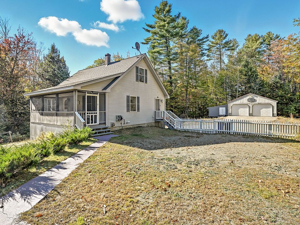 Welcome to this charming 3-bedroom, 2-bath Cape set on 4 private acres just a short walk from Wilson Lake. The open-concept kitchen, dining, and living areas create a warm and inviting space for everyday living. The first floor features a primary bedroom with an en-suite bath, while the second level offers two spacious additional bedrooms. The finished walkout basement includes a large multi-use room, reading nook, and office area, perfect for work or play. Outside, enjoy your own backyard oasis with a beautiful in-ground pool, ideal for those warm summer days. Plenty of room for gardening, chickens, or other outdoor hobbies.