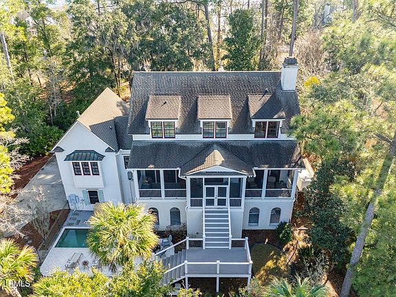 Step outside through one of the three French doors to your private retreat, complete with a sprawling screened porch, refreshing plunge pool, and private cocktail dock perfect for savoring sunsets over the marsh.