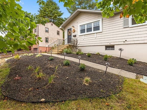 Cozy, single-story ranch nestled in a sidewalk-lined neighborhood! Enjoy the easy convenience of the ranch-style floorplan; with 3 bedrooms, galley style kitchen, dining room and full bath all on one level. The sun-drenched living room is complete with hard-wood floors and a cozy wood-burning fireplace. Brand new glass sliders in the dining room create an easy flow to the back deck, perfect for outdoor entertaining. Inviting and spacious back yard with mature trees, fencing and an extra storage shed. Basement is partially finished and offers a great bonus space, office and a second full bath! Recent updates include a new roof and windows (2019), updated electrical, hot water tank and landscaping. The fantastic location provides the best of both worlds; a quaint neighborhood setting with easy access to shopping, dining and Rt 495. Offer deadline Monday, October 19 at 12:00noon.