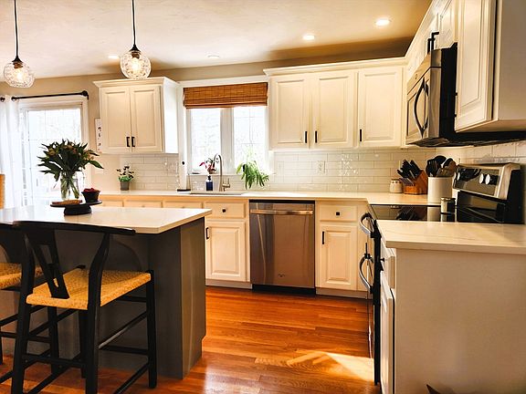Beautifully Maintained 4-Bedroom Colonial on a 1-acre lot offers 4 bedrooms, a 2-car garage, and a convenient location! Step into the elegant foyer, leading to a living room with a brick fireplace and a family room that flows into spacious formal dining room that features a custom ceiling. The updated kitchen boasts quartz counters, newer appliances, a center island, and a cozy breakfast nook. A half bath completes this level. Gorgeous hardwood floors on main level, staircase and 2nd fl hall. Upstairs, the primary suite is a great size and features a walk-in closet and private bath. Both full bathrooms have updated counters and tile floors. The finished basement offers flexibility as a bedroom, office, or rec space. Enjoy distant views & beautiful sunsets from the composite deck. With easy highway access, a vibrant downtown and all conveniences nearby, this home is a must-see!