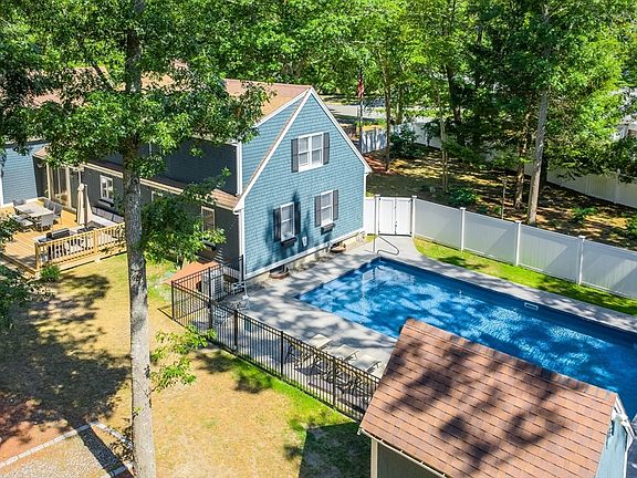 On a quiet cul-de-sac in Osterville, this contemporary Cape blends architectural charm with a resort-inspired lifestyle. The backyard is the pièce de résistance, with a sparkling pool, expansive deck, and gazebo framed by mature landscaping—perfect for entertaining or retreat. Inside, renovations highlight wood floors, exposed beam ceilings, and brick hearth fireplaces, creating warmth and refinement throughout. The open kitchen, dining, and living areas flow together, anchored by a granite island and premium stainless appliances for effortless living and entertaining. The private primary suite offers vaulted ceilings, walk-in closet, and spa-like bath, while additional bedrooms and a loft game room provide flexible accommodations. A finished lower level adds more space for recreation, office, or fitness. Outfitted as a full smart home, it is designed for seamless enjoyment. Minutes from Osterville Village and beaches, this is an exceptional property for a variety of owners!