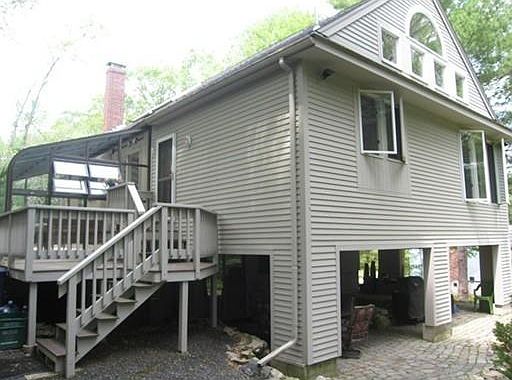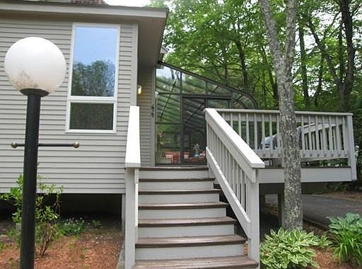 Sun-drenched, beautifully maintained Contemporary, situated on lovely wooded lot, in great neighborhood! Amazing front-to-back greenhouse/sunroom (2009) with Jerusalem stone. This Chef's kitchen must be seen...hardwood floors, Subzero refrigerator, recessed lights, newer Granite Counters, new Miele dishwasher, double oven!! Dramatic Dining Room has vaulted ceilings, tons of recessed lights, and Gas fireplace! Beautiful heated separate foyer with marble floors! New roof, new CA compressor, new hot water heater! Fabulous lower level is currently being used as a playroom, but would make a fabulous in-law or teen Suite, and has beamed ceiling, brick backdrop, lots of closets, and sitting room, as well as full bath, and walkout to patio!