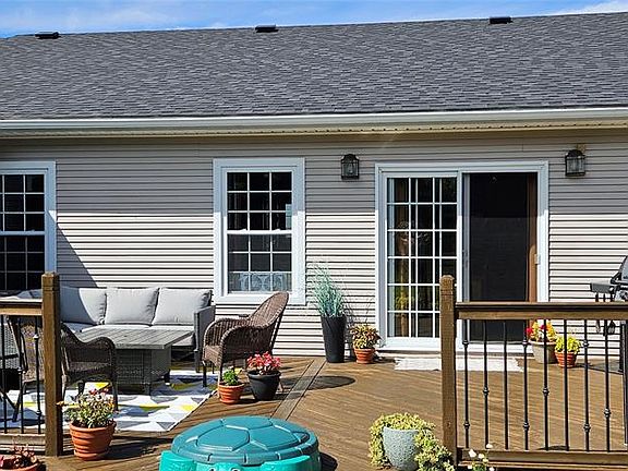Charming One-Level Home Ideal for Easy Living! First time on the market! This beautifully maintained home is perfect for those looking to avoid stairs while enjoying the comforts of a spacious and well-designed layout. Situated in a quiet, desirable neighborhood, this property offers a peaceful retreat with easy access to all essentials. Fully landscaped with a mix of young & mature shrubs surrounding the property for added curb appeal. Private rear deck off the kitchen ideal for entertaining or enjoying your morning coffee. Concrete walkway leading to the welcoming front foyer. Ample Asphalt Parking & an attached garage with remote opener, complete with stairs leading to a convenient crawl space for extra storage. Spacious front foyer with closet space & an additional den off the foyer, perfect for a formal dining room or playroom. Open concept living & kitchen area great for family time and entertaining. Kitchen featuring tons of birch cabinets, new counters, large island, pantry, broom closet (fridge, stove, and dishwasher included). Mudroom with closet and a laundry room with direct access to the garage; 3 generously sized bedrooms, including a Primary Suite with a walk-in closet and a private ensuite featuring a custom vanity and one-piece shower. Full bathroom with a one-piece tub and custom vanity. Beautiful crown moldings throughout. New Durastone tile flooring in the laundry, mudroom & kitchen areas for a fresh, modern look. New asphalt shingles (2025) ensuring peace of mind for years to come; vinyl siding & windows with all glass panels replaced (2024-2025). This home is move-in ready and perfect for anyone looking to enjoy the ease of one-level living in a serene and sought-after neighborhood. Don't miss out—schedule your showing today!