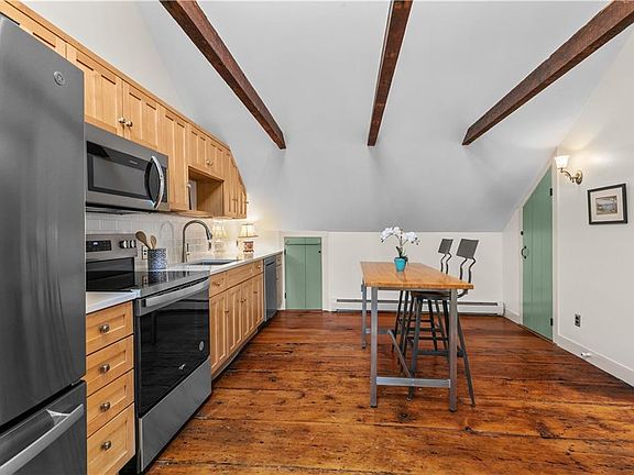 Welcome to The Bradford House- A collection of four new unique condominiums housed in a stunning renovated and restored historic Federal Style home located in the heart of downtown Bristol. This thoughtfully one-bedroom, one-bathroom renovated and restored third floor condominium sits up in the treetops with views over the city. Open kitchen with skylights with exposed beams and cathedral ceilings opens to the sunny living area. Central air, new large window in living room and individual storage complete the offering. One assigned off street parking space in included in the purchase price. Steps to an impressive array of shops, galleries, restaurants and historic place. Enjoy easy access to coastal paths and parks on Bristol Harbor. Live in a piece of history, beautifully preserved full of character and updated for today's lifestyle.
