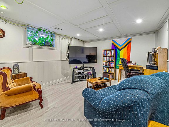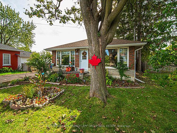 Desirable home in a premium location just seconds from downtown, set in a mature treed neighbourhood with a large 59-foot frontage. This 3+2 bed, 2 bath detached bungalow features bright oversized windows in the kitchen and living areas. The living room is enhanced with hardwood floors and crown moulding, while the gorgeous eat-in kitchen, updated in 2022, offers pot lights, stainless steel appliances, and plenty of space for family meals. The main level includes two bedrooms, both with walkouts to a private wooden deck. The basement finished with separate entrance leading to a full in-law suite complete with a kitchen, family room, 2-bedroom nanny split, and a four-piece bathroom, providing excellent space for extended family or rental potential. The private backyard is fully fenced and beautifully landscaped, featuring a large deck, gazebo, and multiple areas for outdoor dining and relaxation, all surrounded by mature greenery. Additional updates include shingles (2012), upstairs bathroom (2020), air conditioning (2022), electrical panel (2021), washer and dryer (approx. 2019), gas furnace (approx. 6 years old), gazebo (2021), and most windows (2011). With a double car garage and the rare combination of location, upgrades, and income potential, this home is a true gem in Clarington. Check out realtors link for additional virtual tours.