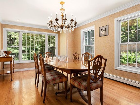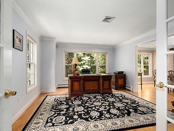 A modern colonial sanctuary sited on over 1/2 acre of park-like grounds w/ a charming natural brook and driveway bridge. This 5 BD home with striking curb appeal is nestled in a rare Newton cul-de-sac, creating a private oasis despite being only minutes to Boston, Cambridge, Technology Corridor, and Logan. The home includes a recently renovated home office and kitchen with white cabinets, granite countertops, and high-end appliances. Kitchen opens to spacious family room w/ soaring ceilings and natural sunlight, creating a warm and inviting atmosphere. Oversized Master includes renovated bathroom w/ heated floors and custom walk-in closet. Finished basement includes separate entry w/ BD and full bath, large entertainment room, and built in bar area. All bathrooms, kitchen, office, basement and exterior recently renovated. Ample storage throughout home, including a large attic ready to be finished. 2 car attached garage, plus oversized driveway and cul-de-sac provides generous parking.
