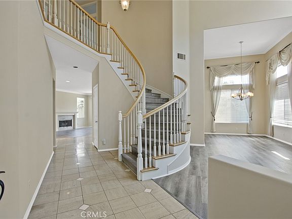 Welcome to 44 Calavera, Irvine, nestled in a quiet neighborhood in Westpark community. This beautifully upgraded 5-bedroom, 3-bathroom residence offers a spacious MAIN FLOOR bedroom and bathroom, functional layout with high ceilings, and a beautiful spiral staircase with BRAND NEW flooring. Enjoy the expansive family room featuring a cozy fireplace, built-in entertainment center, and crown molding. The chef-inspired kitchen is outfitted with a large center island, quartz countertops with tile backsplash, Maple wood cabinetry, and a charming breakfast nook. The main-level bedroom can serve as a guest suite or office. Main floor also has a full bath with a walk-in shower. Upstairs, the spacious primary suite offers a walk-in closet, dual vanities, and a soaking tub. The landscaped backyard is private and tranquil, greenery, and palm trees perfect for entertaining or relaxing. Located within walking distance to Plaza Vista School, parks, pools, tennis courts, and shopping centers. Zoned to award-winning Irvine Unified School District.