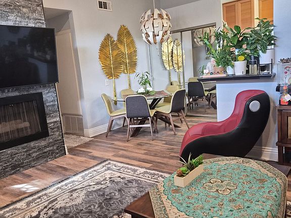 Cozy fireplaceAbundant natural lightElegant primary suiteGenerous patioNew stainless-steel appliancesConvenient breakfast barCommunity pool and park
