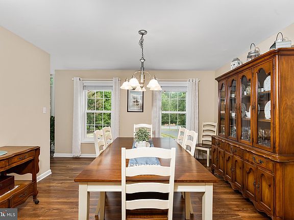 Welcome to 44 Chesters Way, in the neighborhood of Marley Station, a single street community. Conveniently located between Elkton and North East, with a short drive to Route 40, for easy commuting. This center hall Colonial is meticulously maintained. Enter the two story, center hall with stairs to the second floor and a half bath off the hallway. The formal living room located to the right of the front door provides a quiet place to escape. To the left of the front door is a spacious dining room, perfect for family get togethers. To the back of the house is the kitchen, boasting stainless steal appliances, ceramic backsplash and new, quartz countertops. The oversized peninsula/breakfast bar has seating for four. The family room has wall to wall carpet and a gas fireplace. Off of the family room is the large sunroom (20X23 feet). The windows have solar shades to keep out the heat during summer. A Mitsubishi wall mounted mini split provides heating and cooling for year round enjoyment. Up the stairs you come to a second floor laundry room, which makes doing the laundry a little easier. The primary bedroom includes a ceiling fan, chair rail and a large walk in closet. The primary bathroom includes a linen closet, soaking tub, a separate shower and double vanities. Also found on the second floor are two generous sized bedrooms with ceiling fans and a center hall bathroom with a linen closet and a tub/shower. The finished basement is bright and cheery and includes baseboard heat with a programable thermostat and a large storage closet. The unfinished part of the basement contains all the mechanicals and plenty of storage. The flooring on the first floor is luxury vinyl plank flooring and carpet in the family room. The two car garage is just off the kitchen. The garage includes shelving for organization, pull down steps that lead to storage space above the garage and a new garage door opener with Wifi capabilities. The fenced back yard contains a generous shed, raised garden beds, a large deck (13X20) off the sun room, and a dry water bed. Other amenities to this home include: a new, efficient, hybrid heat pump with propane back up for cold winter days. The propane tank is owned. The garage attic is floored for additional storage. A new water treatment system has been installed. All the windows have newer (2018) Bali, 1 inch faux wood blinds through out the house. There are ceiling fans in all the bedrooms, family room and the sun room. Don't miss this home. Call today for your private tour.