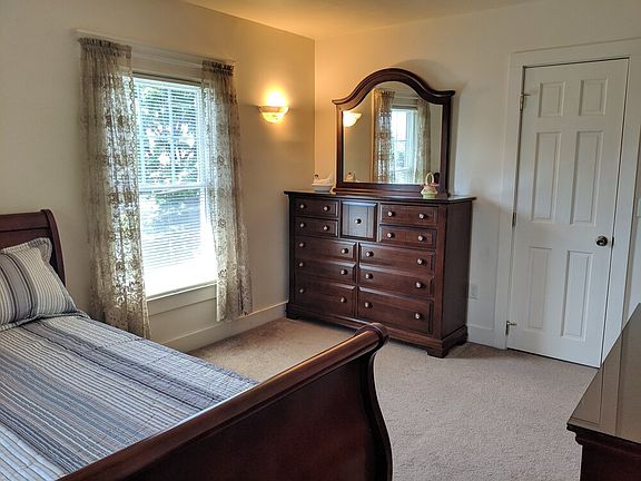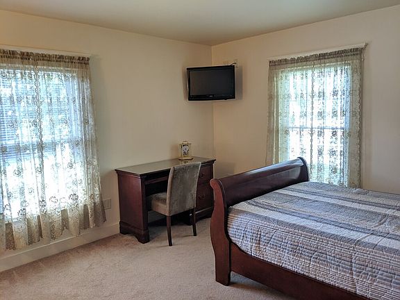 Each bedroom has a matching cherry desk, dressers a full-size sleigh bed, a 32" Smart TV, curtains, blinds, and a full-length mirror