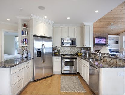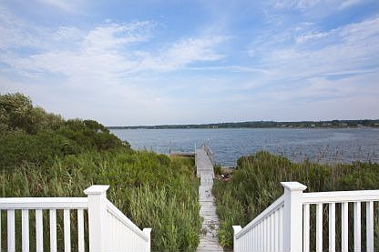 This charming pond front three bedroom two bath beach cottage offers both sunrise and sunset vistas. Open light filled living spaces, kitchen with stainless appliances and deck with retractable awning perfect for outdoor entertaining.
