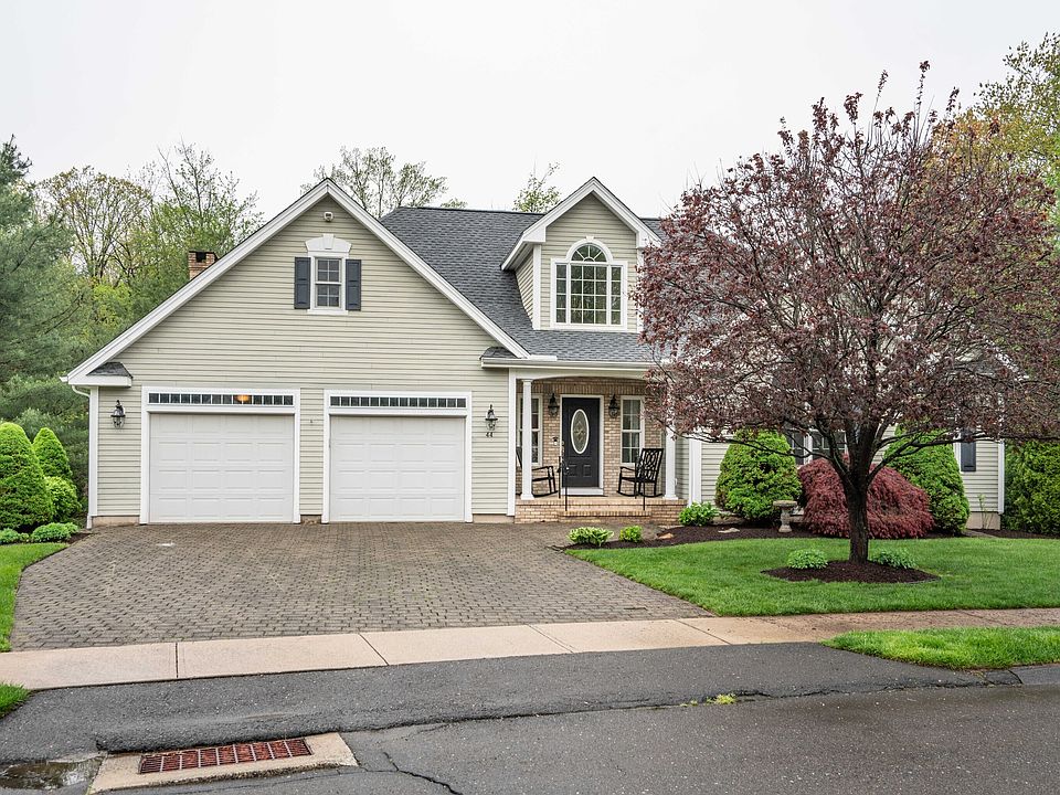 Welcome to this beautifully crafted custom home that blends elegance, comfort, and functionality. Step into the impressive two-story foyer and take in the open-concept layout enhanced by soaring 9+ foot ceilings and elegant architectural pillars. The spacious great room features vaulted ceilings and a cozy fireplace converted to a high-efficiency wood stove, perfect for both ambiance and warmth. The open dining area flows seamlessly from the great room and offers direct access to a gorgeous Trex deck overlooking a private, lightly wooded backyard-ideal for outdoor entertaining or peaceful mornings. The heart of the home is the custom-designed kitchen, complete with granite countertops, a center island, and a built-in desk area, perfect for today's lifestyle. The first-floor primary suite is a true retreat, featuring a Palladian window, high ceilings, a walk-in closet, and a luxurious en-suite bath with a nearby laundry area for added convenience. Upstairs, you'll find a spacious additional bedroom with a full bath and a large skylit bonus room, perfect for a home office, gym, or guest suite. The high-ceilinged basement offers a dedicated workshop area and abundant space for storage or future expansion. Outside, enjoy the professionally landscaped yard with irrigation system and a paver driveway that adds to the home's curb appeal. Some additional features - the home has central vacuum and a brand new roof installed in April 2025. Bonus area is partially finished without permits and has no heat. There are no disclosures as this is a Trust.
