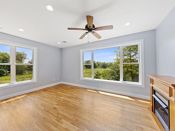 Gas fireplaceWasher and dryerPicture windowsBreakfast barHardwood floorsGranite countersOpen-plan kitchen