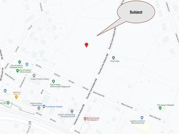 Approximately 7.425 acres corner lot in the city limits and the Overlay district of Auburn GA! The current zoning is C-2 .There are many possible uses including senior living facility, townhomes, retail, O&I, residential or church facility There is road frontage on two streets. Approx 891 feet of frontage on County Line Auburn rd and approx. 364 feet on 3rd Ave. Gentle topography makes this a great piece for almost any use.