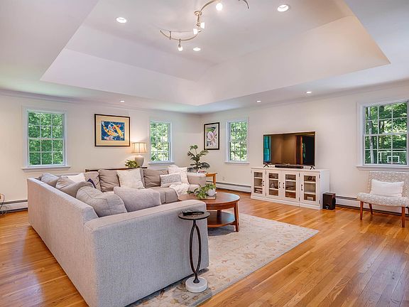 This lovely home is filled with character on 3 levels! From the covered front porch step into a spacious entryway and formal dining room that flows into the stunning family room with tray ceiling, dramatic lighting and cozy wood stove. Grab a snack from the nearby kitchen with large granite island and head down the hall to a front-to-back living room with wood fireplace and my favorite: a stunning 4-season sunroom with treehouse-worthy views including wetlands and field below. From here enter an entertainer's paradise: multi-level mahogany deck complete with outdoor kitchen, hot tub and 2 sitting areas. Below is a magical firepit deck area overlooking the lower lawn and a tree-house fit for a king! At day's end, retire to your updated primary suite with double vanity and oversized tile shower. 3 other well-sized bedrooms on this level share an updated bathroom with tub and tile surround. For movie night or sleepovers, head to the newly finished basement offering theater space and play area or gym. The unfinished section is a handyman's delight with workshop and plenty of storage space. Don't miss the detached barn that has been used over the years as a chicken coop/garden shed & garage. Updates include a brand new roof and driveway, windows, Hardie Board siding, all new back deck, central a/c--too many updates to list. Easy walking distance to Amherst Village with its TOP SCHOOLS, easy access to Rt 101, shopping and just 21min to the airport. Come stay awhile...Welcome Home!