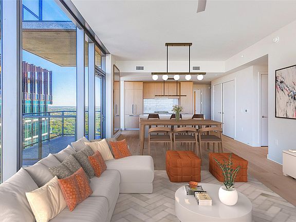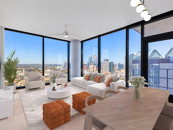 Prime NW corner residence with coveted views of Downtown skyline & Lady Bird Lake @ 44 East Ave. Situated in an exceptional location at the foot of Lady Bird Lake, you are just steps from the hike & bike trail, far enough from Rainey Street for peace & quiet, but close enough to walk to dinner & nightlife. Easy access by vehicle via East Ave - no need to drive on Rainey Street! The B3 plan features floor-to-ceiling glass, Italian cabinetry, quartz counters, white oak hardwoods, built-in Bosch appliances, solar shades, & W/D. Curated amenities include 24-hr concierge, fitness center, yoga studio, resort-style pool, spacious deck/grill areas, conference rooms, 37th floor sky lounge, 2 dog parks, pet spas, & more!