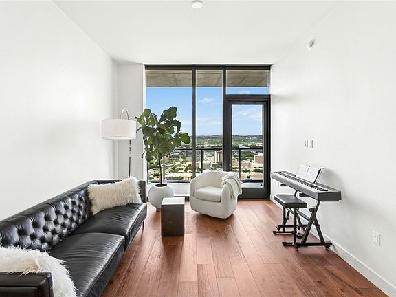 Welcome to elevated living in one of Austin's most prestigious high-rises. This stunning condo on the 37th floor offers panoramic views of both the lake and the city skyline an exceptional backdrop for sunsets and fireworks over the water. Designed with modern elegance in mind, this light-filled unit features floor-to-ceiling windows, wide-plank wood floors, and high-end finishes throughout. The sleek kitchen is outfitted with top-of-the-line appliances, ideal for entertaining or a quiet night in. Step out onto your private balcony and take in the vibrant downtown energy from above. Located just steps from Austin's best restaurants, bars, Royal Blue Grocery, fitness centers, and yoga studios, you'll also enjoy direct access to the lake and hike-and-bike trails perfect for both avid runners and relaxed lakeside strollers. The building's resort-style amenities take luxury to the next level: Pool and BBQ deck, Full fitness center, Rooftop lounge with panoramic city views, Multiple conference and meeting rooms, Guest suites for visiting friends or family, Elegant resident lounge designed for work, socializing, or relaxation. Whether you're new to Austin or looking to upgrade your lifestyle, this is downtown living at its absolute best.