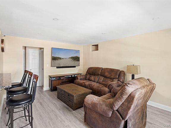 Fully renovated ground-level two-bedroom in Roslyn Gardens. The open kitchen features granite countertops, stainless steel appliances, and bar seating to the living room. Hardwood floors and recessed lighting create a clean, modern feel throughout. The new bathroom includes a glass stall shower and contemporary fixtures. As an end unit, it benefits from added natural light. Amenities include on-site laundry and nearby municipal permit parking. The location is ideal for commuters with quick access to major highways, the LIRR, and local shops and dining.