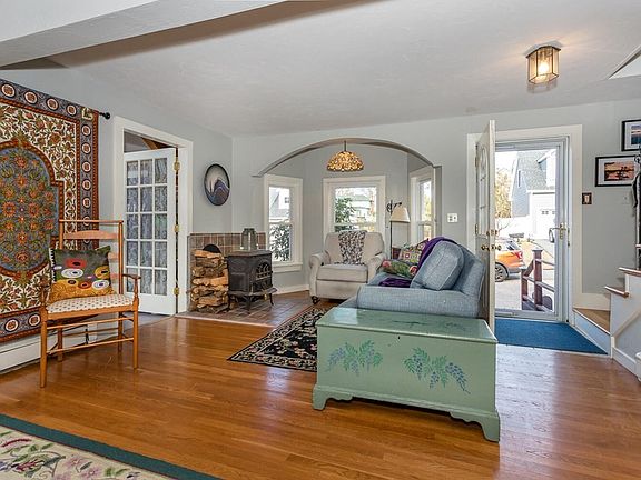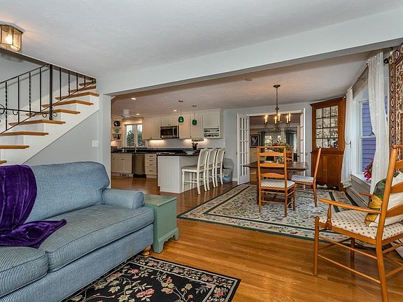 Updated & Well Maintained 5 Bedroom Antique Colonial located in a fantastic neighborhood that is just steps away from town center & train. The first floor features a terrific open floor plan that includes a living room w/ woodstove that opens to a large dining area & an updated kitchen w/ peninsula, soapstone countertops & stainless steel appliances. There's also an adjoining step down family room w/ gas fireplace, 1st floor laundry room / home office, tile mudroom, 1/2 bath & a cathedral ceiling sunroom w/ gas stove & slider to a Brazilian cherry & trex deck that overlooks an amazing yard boasting a gazebo, storage shed and stone patio and is adorned with multiple gardens and perennials. The 2nd floor includes 5 bedrooms and 2 full baths including the skylit master suite with cathedral ceilings, w-in closet and private full bath. There's also a finished walk out lower level bonus room with slider to yard.