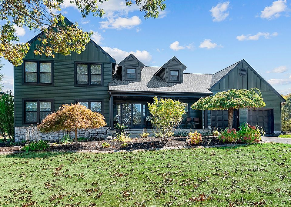 This stunning move-in ready home offers the perfect blend of modern upgrades, comfort, and outdoor living. Featuring 4 spacious bedrooms, 2 1/2 bathrooms, and a finished basement. All chandeliers are included. This property has been meticulously updated. Please reach out to homeowner for a tour. Home is located on Orchard Farms neighborhood! As you enter the home, you’ll be received by double entry doors with smart lock. Inside, you’ll find a large bright mountain site seeing family room with French doors leading to open-concept great room with wood burning fireplace and hardwood floors that interacts with a fully remodeled kitchen with quartz countertops and quartz backsplash, equipped with stainless-steel appliances with an additional beverage fridge, pot filler, large pantry and porcelain tiled floors. Modern updated half bathroom, high ceiling foyer, updated laundry room/mud room leading into a 2 car garage, central vacuum system and central air / forced hot air throughout the home. Upper level includes all 4 bedrooms and 2 fully updated bathrooms. Master sweet has 2 walking closets and updated bathroom with chandelier over soaking tub, a double sink and tiled shower. The high ceiling finished basement includes a gym area, office, family room with projector and LED lights perfect for late night entertainment and a playroom / storage space, making it perfect for today’s lifestyle needs. Basement has scratch free, water resistant laminate flooring and baseboard electric heaters. Step outside to your private backyard oasis with a lighted heated saltwater pool, brand-new fire pit, basketball court with custom flooring, and large deck—perfect for entertaining or relaxing with family. Energy-efficient solar panels are fully installed, helping you save significantly on utility costs. (Financed) Well water on premises and septic system. Exterior home was freshly painted in 2025 and installed new gutter system. Driveway asphalted in 2024. Property is being sold AS IS.